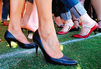 長期穿高跟鞋久站,腳經常抽筋,若未適當治療,會導致腰椎和薦椎神經根受壓迫,反應出類似婦科病症。(AFP)